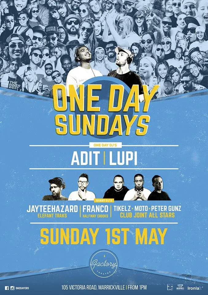 ONE DAY SUNDAYS is back and set to fire up on Sunday 1st May at the Factory Theatre in Marrickville. The days may be getting shorter, the nights a little colder, but things are still heating up at Sydney’s favourite day party.