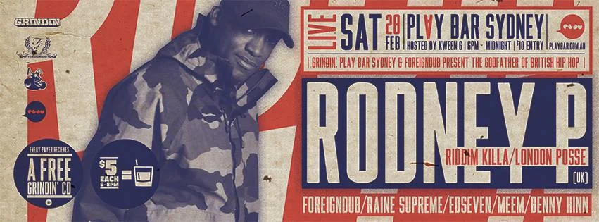 Rodney P (godfather of UK hip hop)- plus Foreigndub, Raine Supreme, Edseven, Meme, Benny Hinn