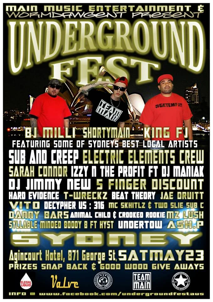 Plus Sydney locals... Sub n Creep, Electric Elements Crew, Sarah Connor, Izzy n the Profit, DJ Jimmy New, T-Wrecks, Beat Theory, Jae Druitt, Vito, Decypher Us, 316, Danny Bars, Animal Child and Crooked Rookie, Ash P and more!
